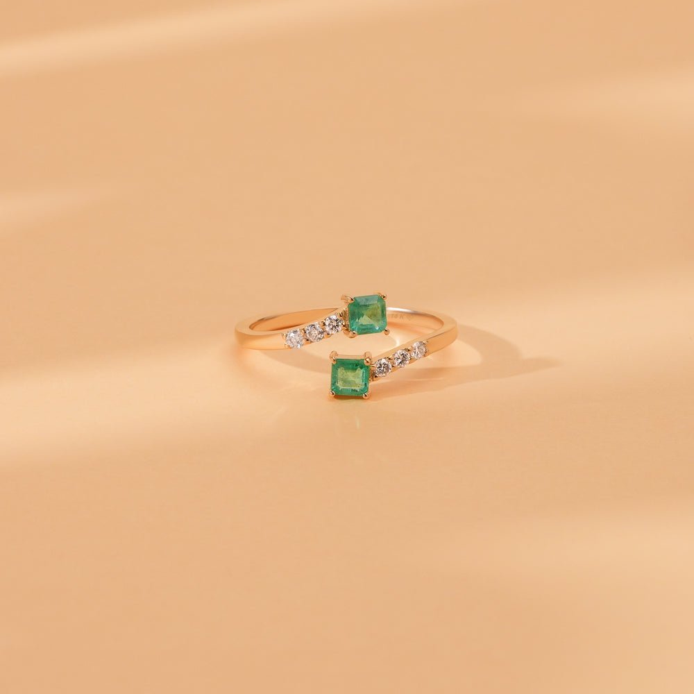 Bold elegance meets fluid design in the 14K Solid Gold Emerald and Natural Diamond Wrap Ring—a statement piece that effortlessly curves around the finger with contemporary flair. Crafted from 14K solid gold and offered in yellow, white, or rose gold, this ring showcases a luxurious wrap silhouette highlighted by vibrant natural emeralds and sparkling diamonds. The asymmetric open-front design is accentuated with 0.50 carats of emeralds, glowing with rich green hues, complemented by 0.13 carats of GH color, VS-SI clarity diamonds for a balanced contrast of color and brilliance.