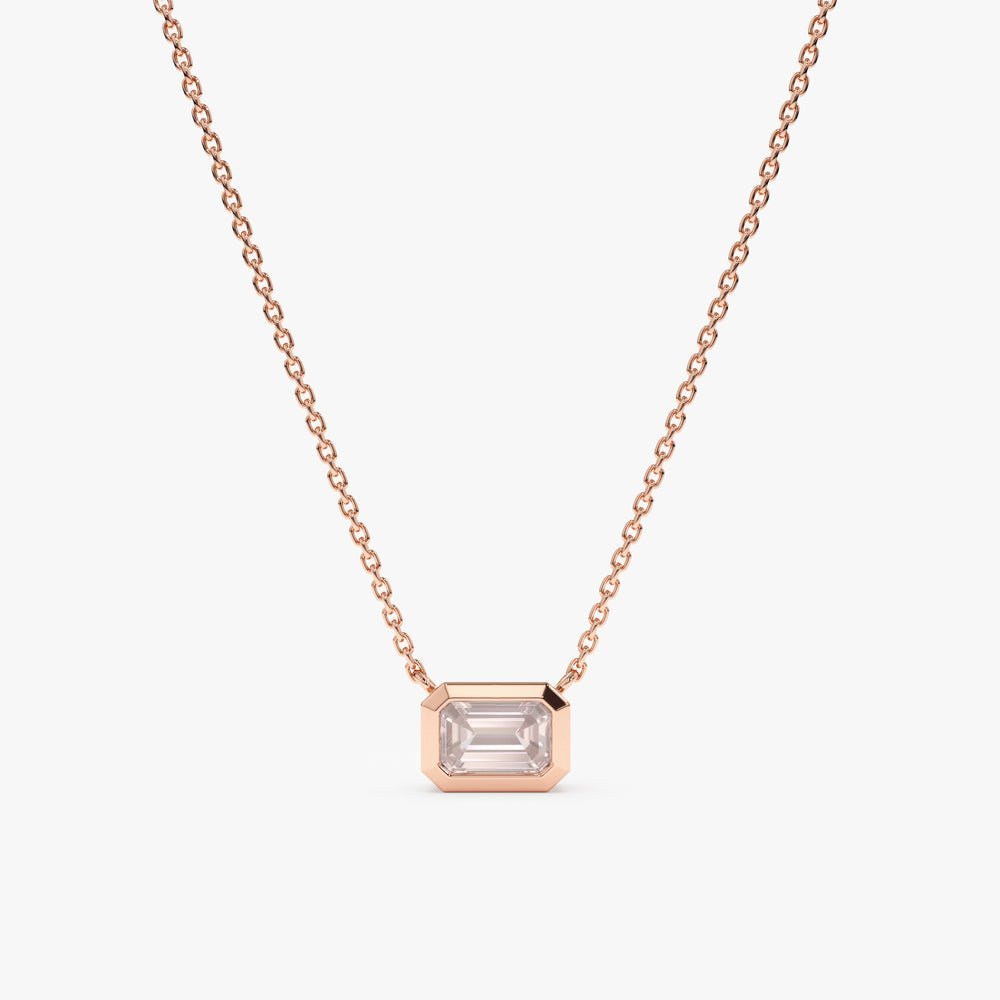 Unlike traditional rose quartz cuts that emphasize softness and subtlety, this necklace features a bold emerald cut that highlights the gemstone’s captivating pink hues in a geometric brilliance. Set within a solid gold frame crafted from high-quality 14k gold, available in yellow, white, or rose gold, the rose quartz exudes a sense of elegance and sophistication, adding a touch of serenity to any ensemble.