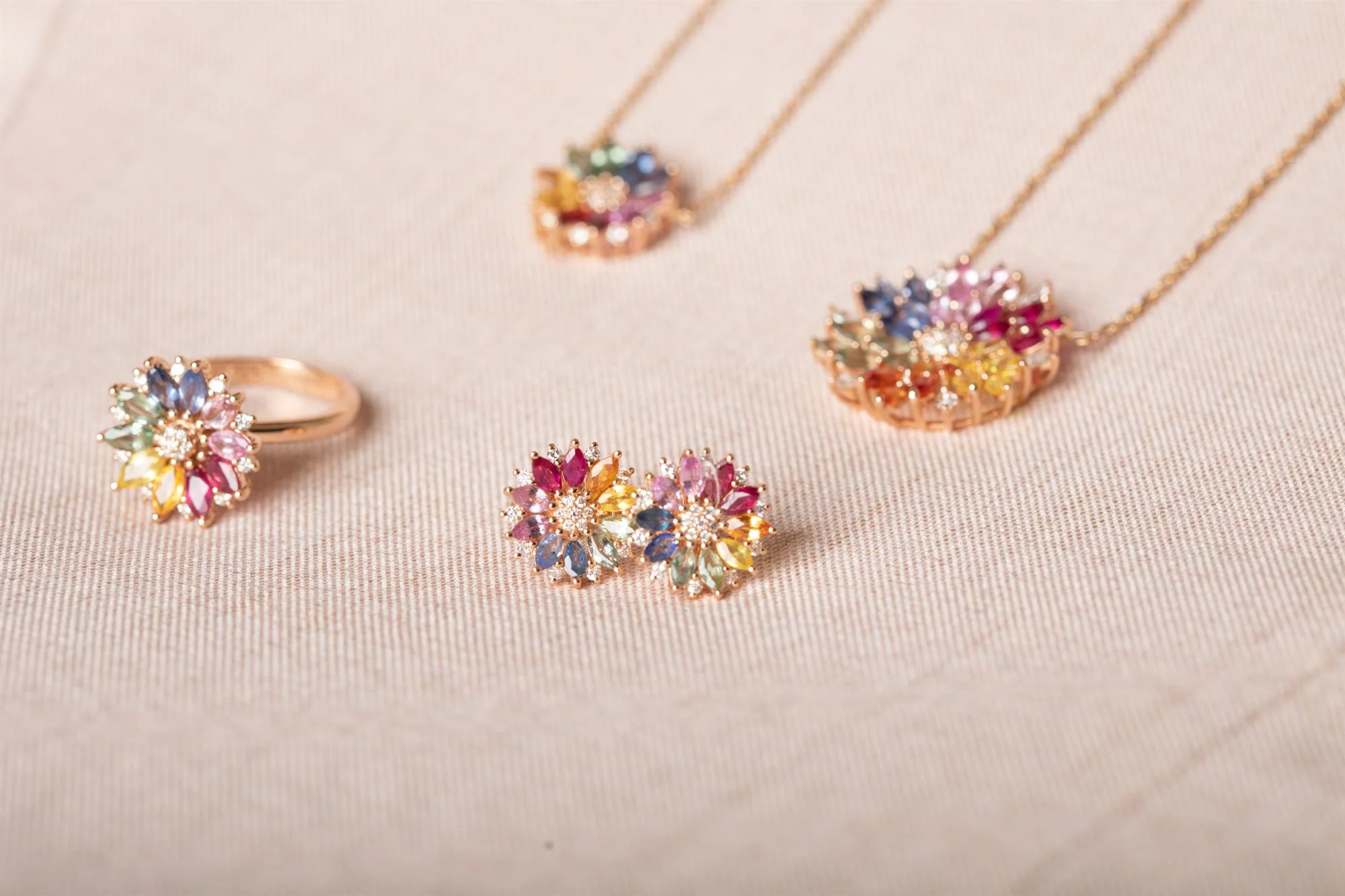 Its unique design that has been inspired by blooming flowers represents a celebration of color and thus would be ideal for those that appreciate bold yet refined jewelry pieces.