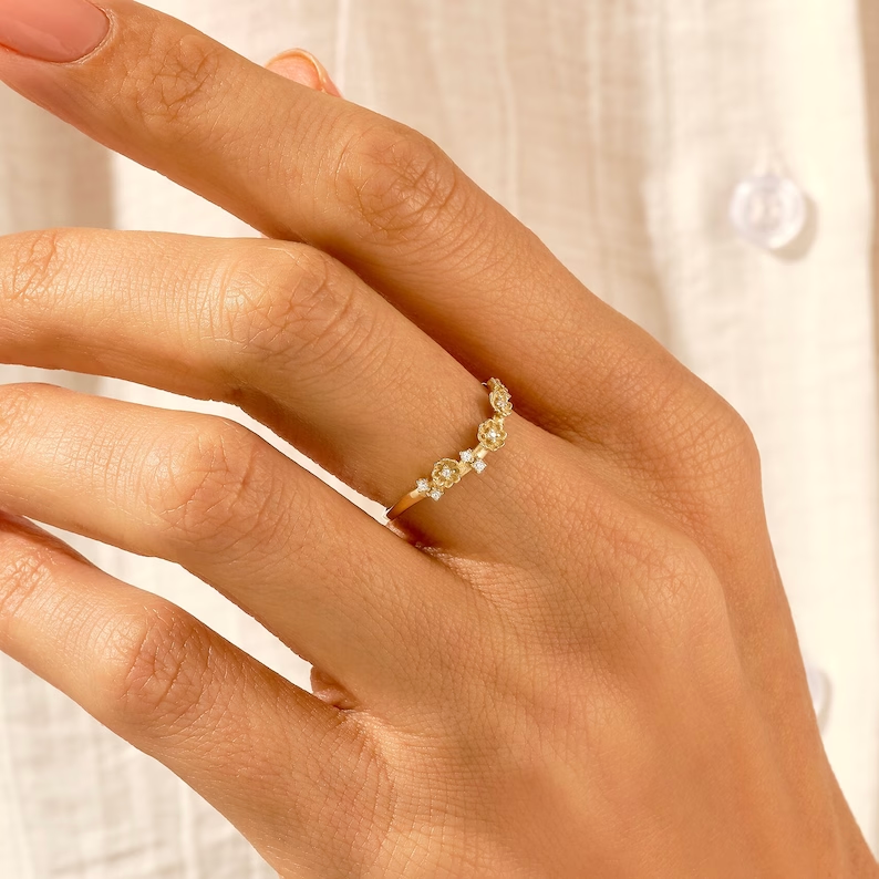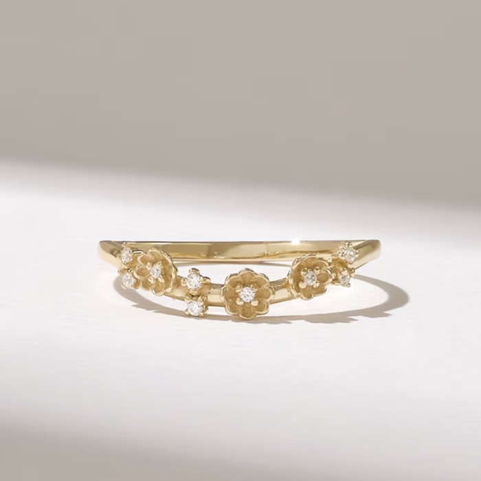 - Product Name:Â Floral Daisy Wedding Ring | 18k Solid Gold Curved Stackable Band for Women