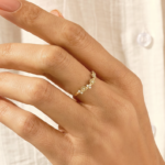 The ring’s dimensions—4.45 mm width at the top of the band, tapering to 1.50 mm in width and 1.20 mm in thickness—make it an ideal choice for stacking or wearing alone for a minimalist yet feminine statement. Its curved shape ensures a comfortable fit and seamless pairing with other rings.