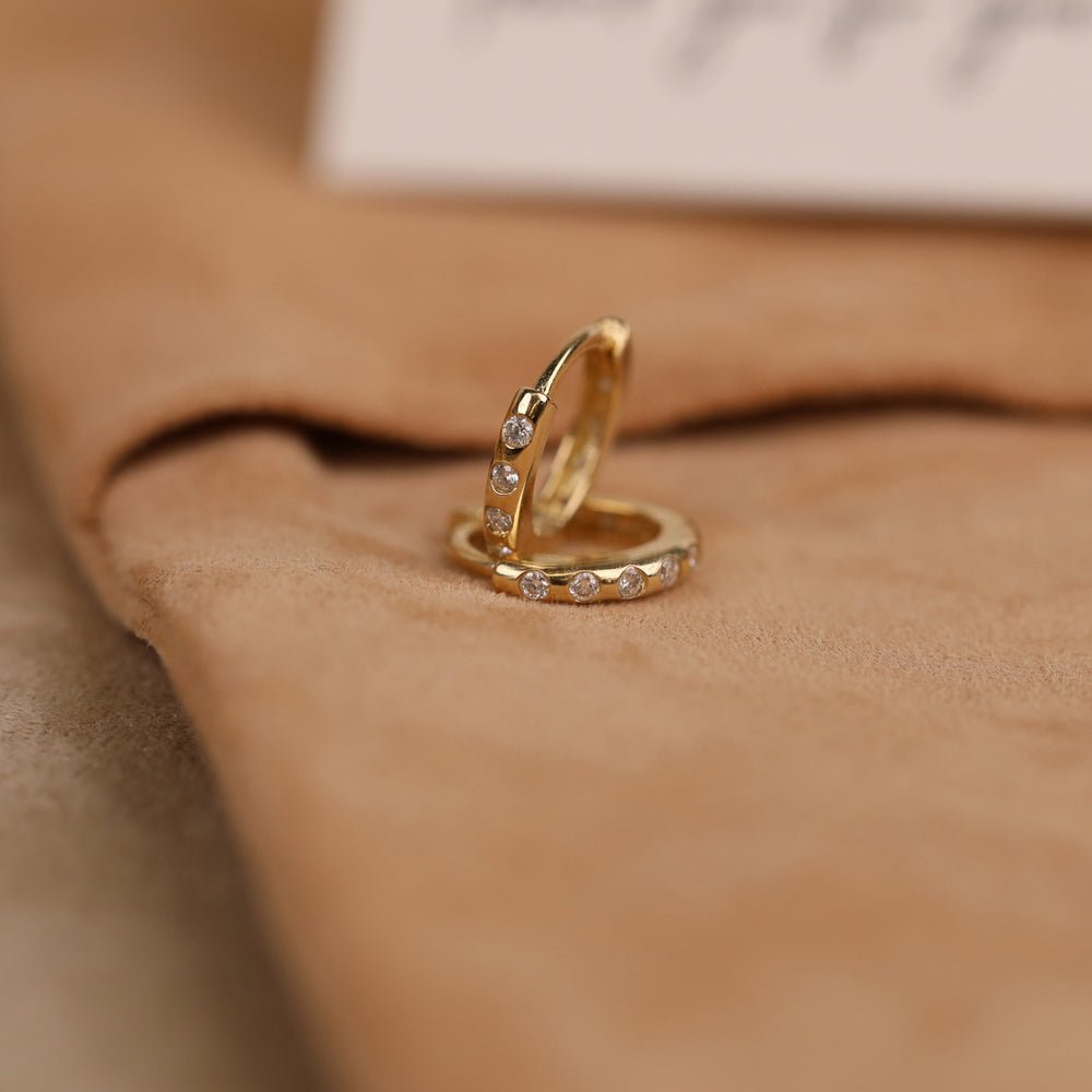 Versatile and timeless, these huggie earrings are designed to complement any outfit, from casual to formal. Whether worn alone for a touch of subtle glamour or paired with other earrings for a layered look, they effortlessly enhance your style with their understated charm.