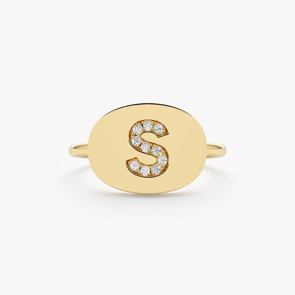 I love the personalization of the initial on this signet ring. The diamonds add a touch of elegance.