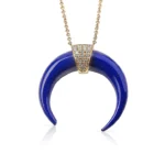 - Product Name:Â Lapis Crescent Horn Necklace with Pave Diamonds