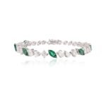 The emerald and diamond combination on this tennis bracelet is magnificent. Perfect for making a statement.