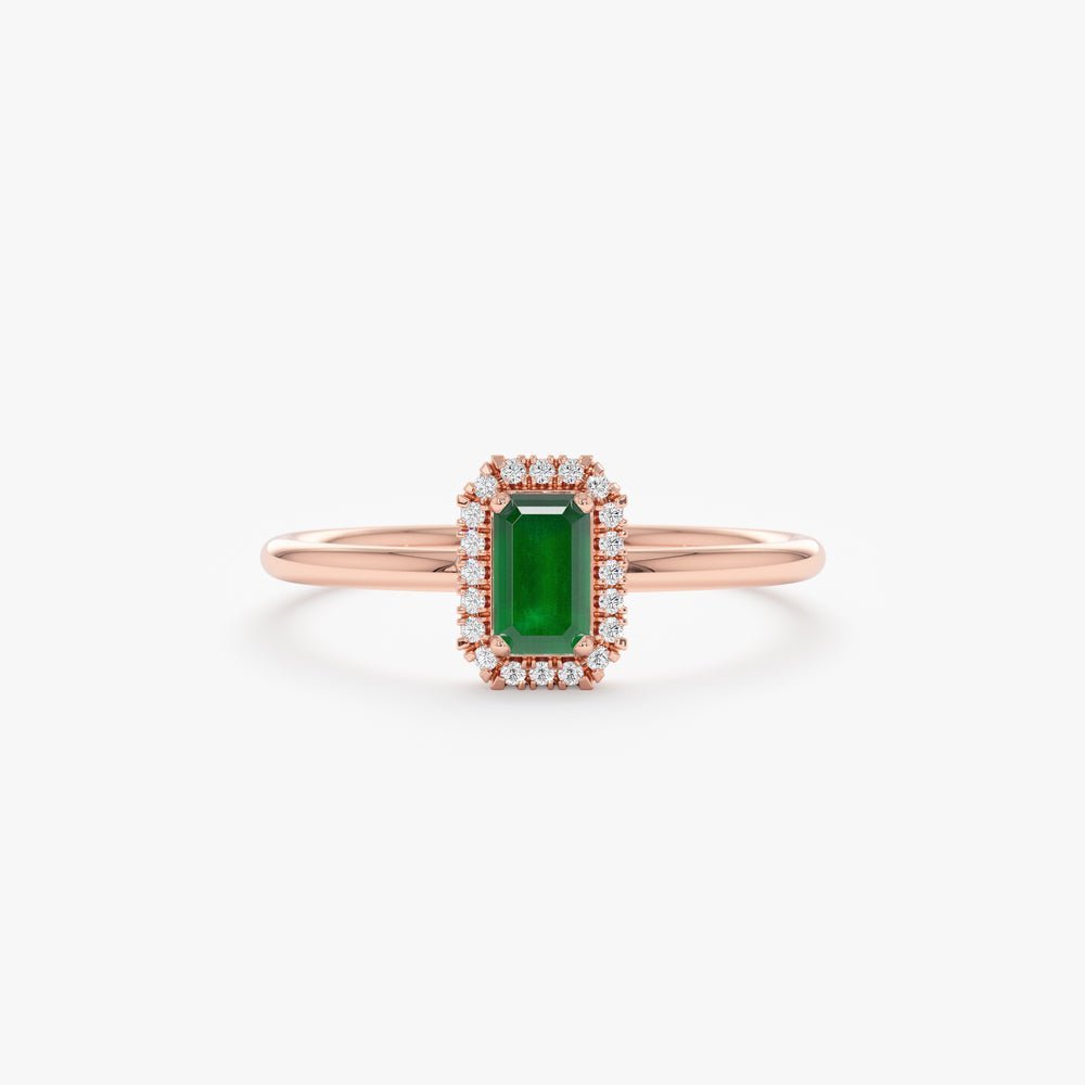 A dainty 14K gold ring with a vivid emerald and natural diamonds—perfect as a modern engagement or promise ring.