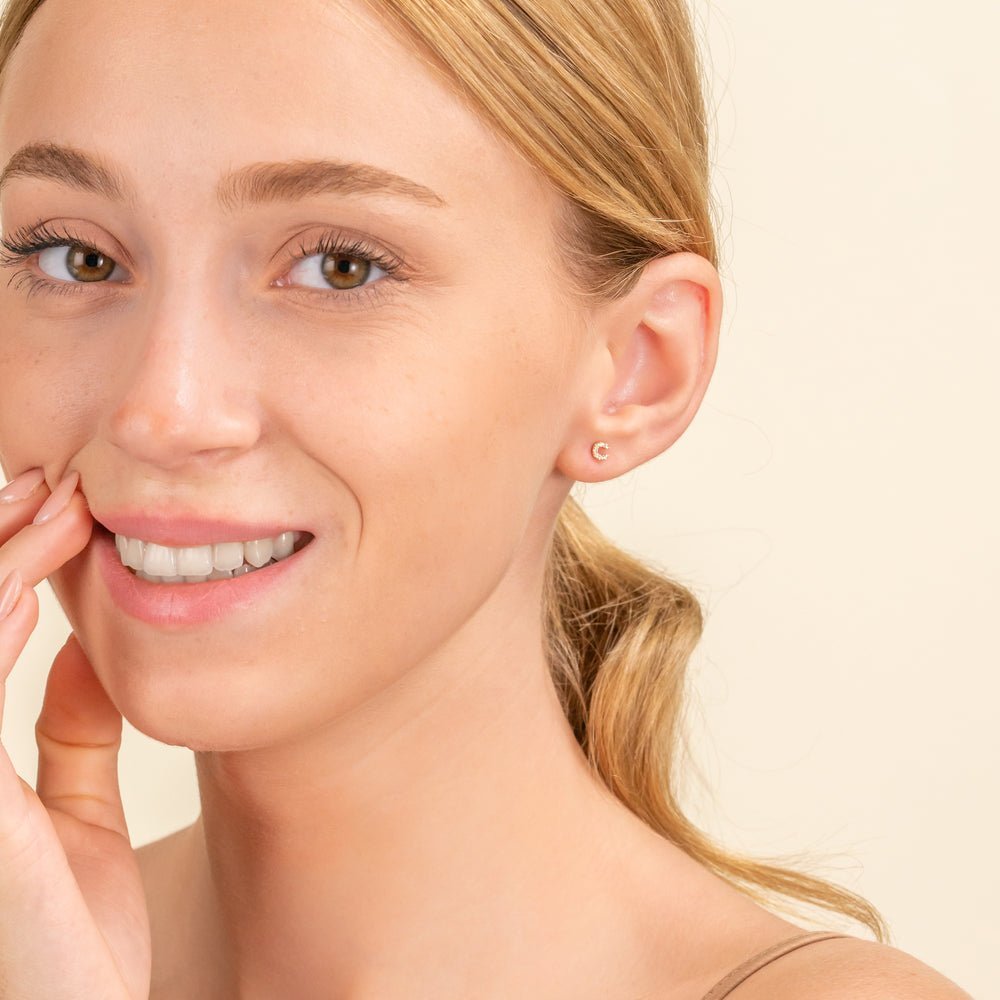 Personalize your style with our Mini Initial Natural Diamond Stud Earrings. Crafted from 18k gold, adorned with sparkling diamonds.
