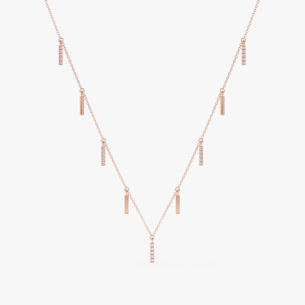 Diamond Bar Charm Necklace: Elevate your look with this handmade necklace featuring a delicate chain adorned with nine diamond-paved bars, creating a cascade of sparkling brilliance with every move.