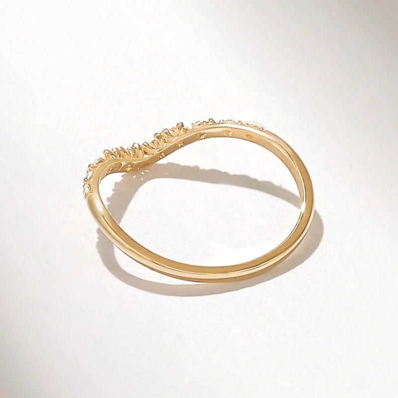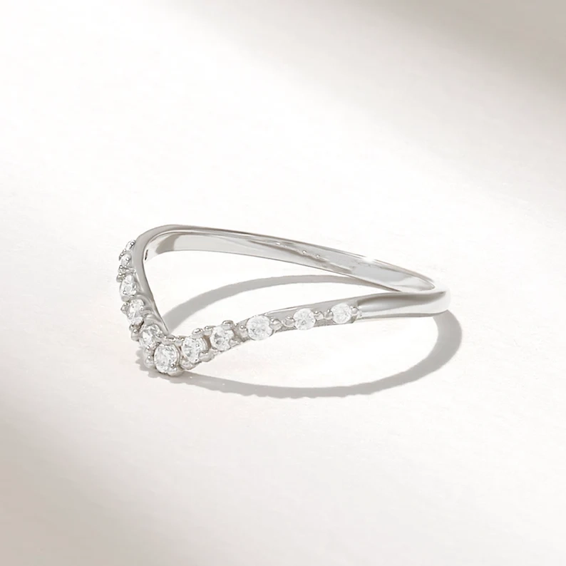Natural Diamond Deep Curve Ring | Pave Stack Ring for Women | V Shaped Nesting Ring