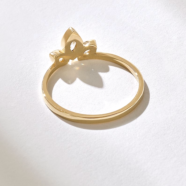 14k gold lotus engagement ring featuring 0.28ctw natural marquise diamonds (GH color, VS-SI clarity). BIS Hallmarked & GIA certified.
