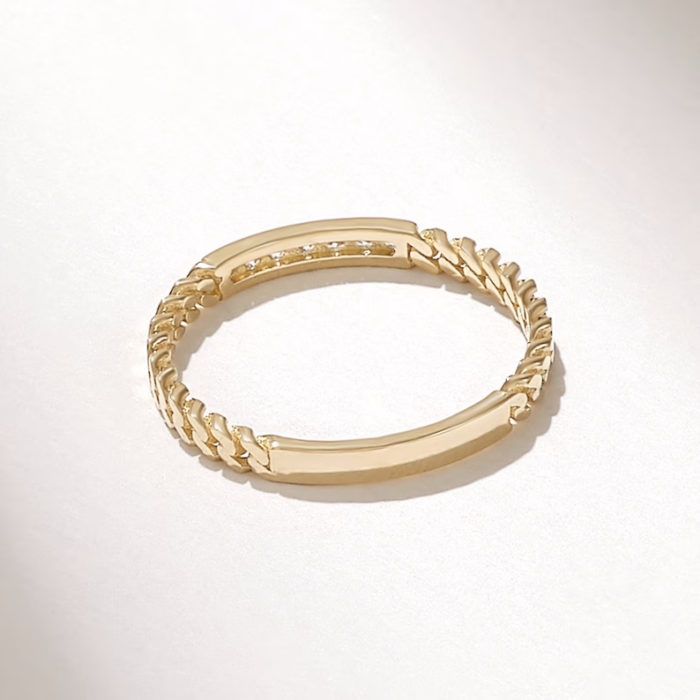 Product Name: Diamond Pave Chain Ring | 18k Solid Gold Slim Cuban Link Eternity Ring for Women