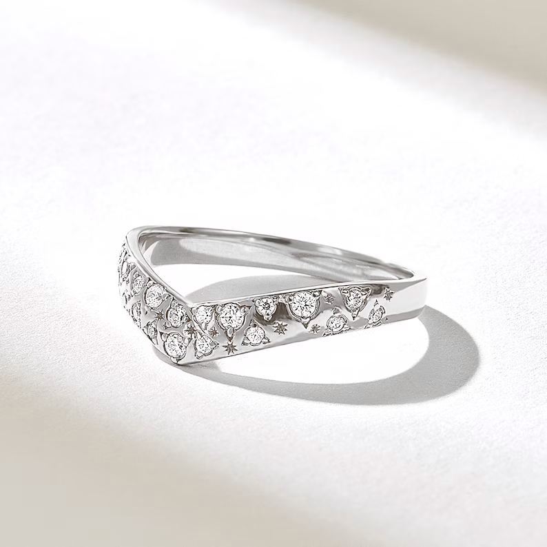 Elegantly crafted to symbolize love and unity, our Natural Diamond Wishbone Ring in 18k solid gold is the perfect blend of sophistication and symbolism. Designed in a graceful V-shape, this curved wedding band complements both engagement rings and can stand alone as a minimalist statement piece. Set with natural diamonds totaling 0.26 carats, each gem is hand-selected for its GH COLOR, VS-SI Clarity, ensuring radiant sparkle and enduring brilliance.