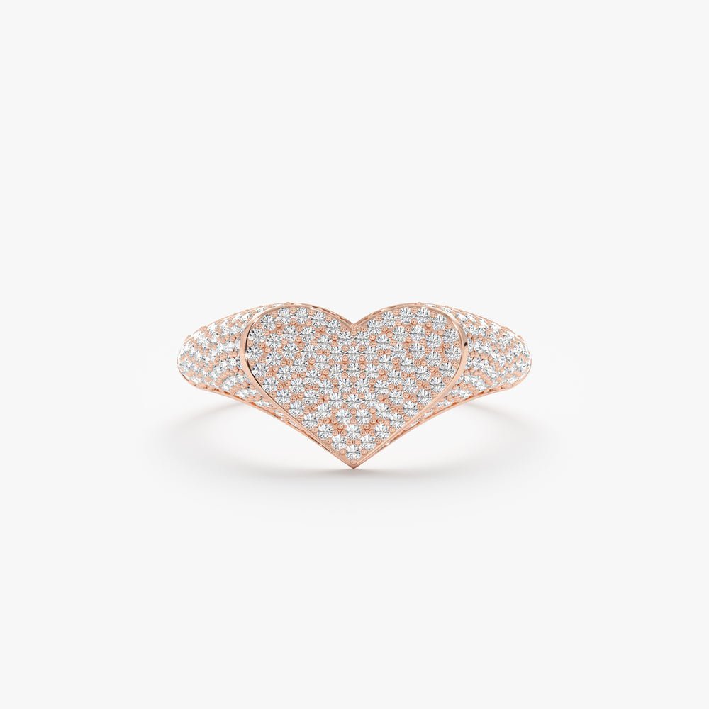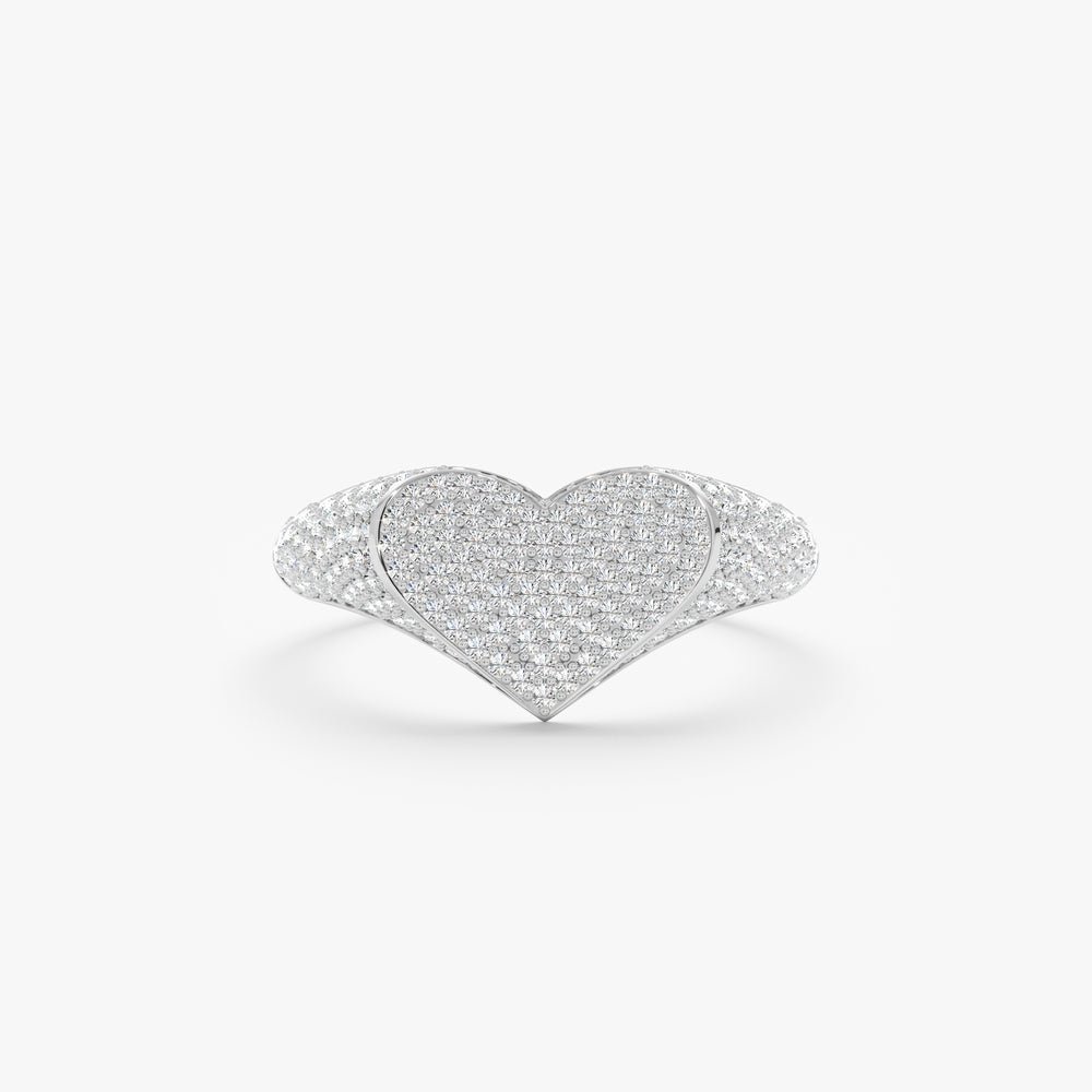 Each diamond is hand-selected for its GH COLOR and VS-SI Clarity, offering radiant brilliance and refined elegance. The pavé setting ensures the diamonds sit flush within the heart silhouette, creating a striking yet sophisticated sparkle. The band, measuring 2.7 mm, balances the statement heart design with comfortable wear, making it perfect for daily elegance or occasional flair.