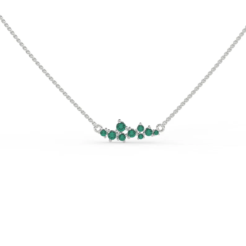 A beautiful 14K solid gold necklace featuring a cluster of natural emeralds, offering a vibrant and timeless design perfect for adding color and elegance to any outfit.