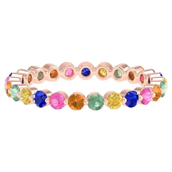 14K Solid Gold Natural Multi Sapphire Band Ring