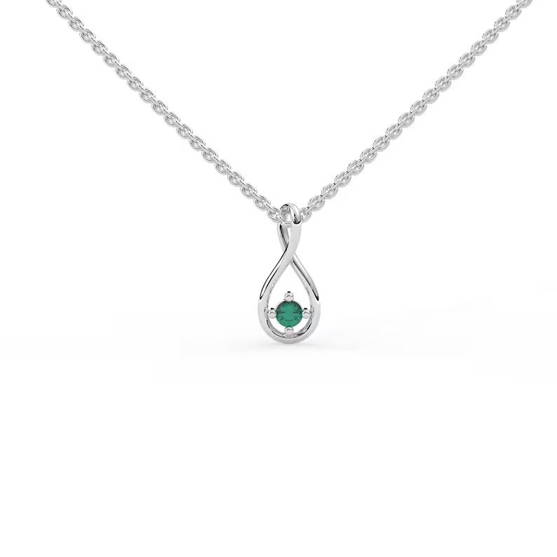 Elegant 14K solid gold natural solitaire emerald necklace, featuring a single vibrant emerald stone for a timeless and sophisticated look.
