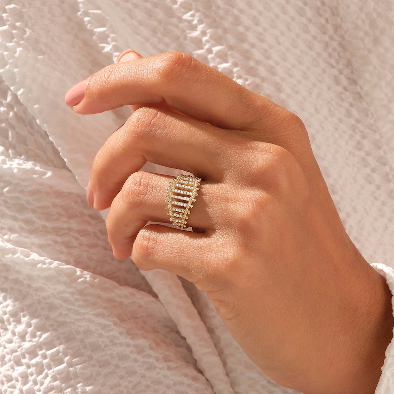 Pave Natural Diamond Bold Statement Ring | 18K Solid Gold Unique Design for Women