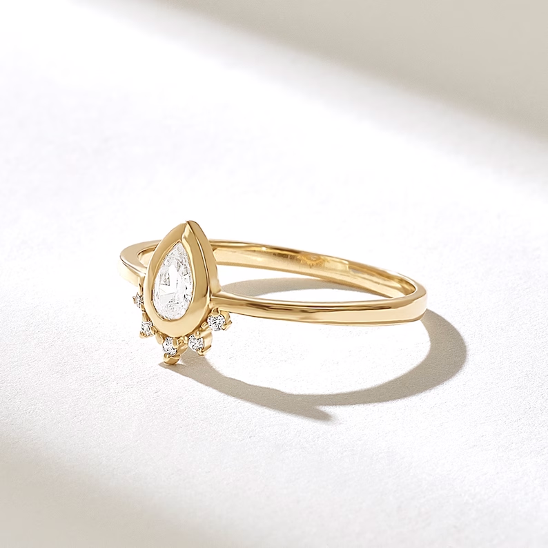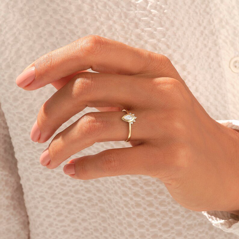 Pear Moissanite Diamond Tiara Ring |Bezel Moissanite Diamond Solitaire Ring Women