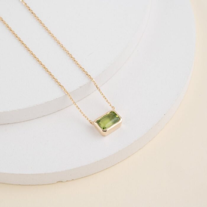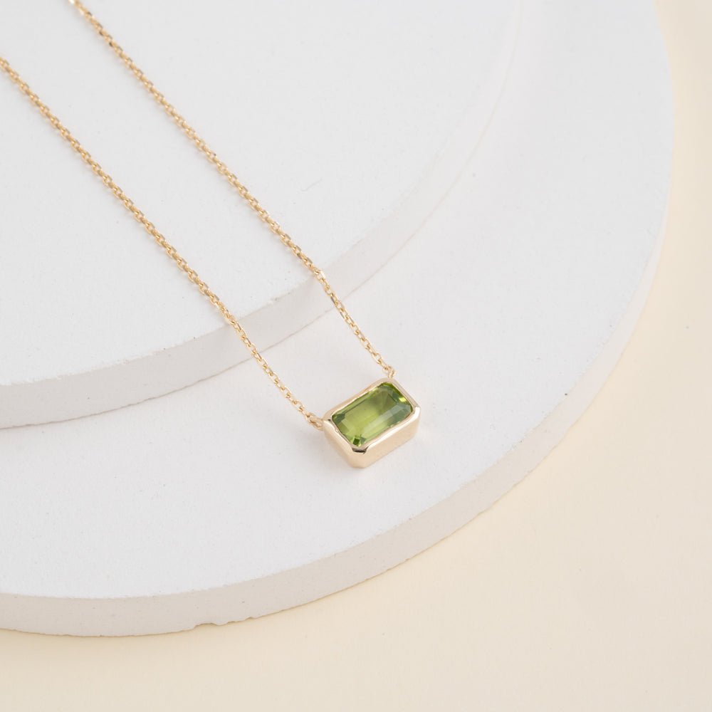 Radiate serenity and elegance with our Peridot Necklace, featuring a vibrant octagon-cut peridot gemstone set in solid gold, meticulously handcrafted for a stunning visual impact.
