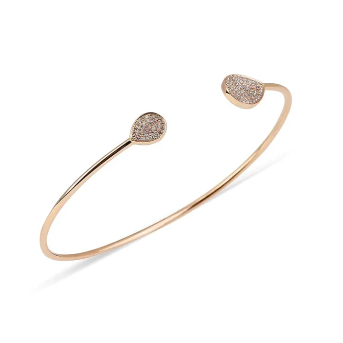 It is crafted using premium 14K gold, featuring a unique motif of raindrops delicately placed on your wrist, with its sleek and open design offering a light-weight feel, making it comfortable to be worn on a daily basis while still making a loud statement.
