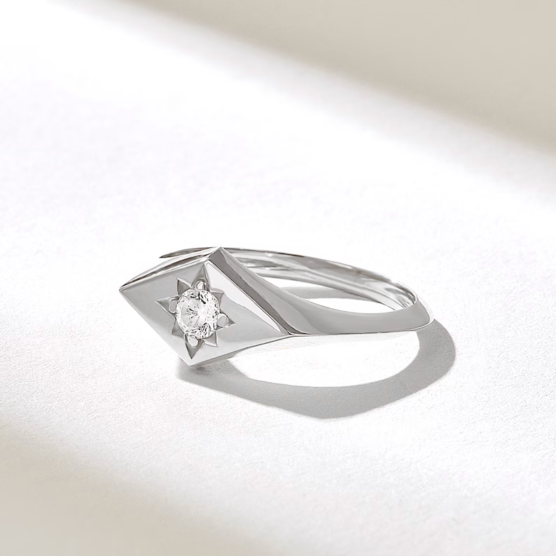 - Product Name: Rhombus North Star Signet Ring | 18k Solid Gold Celestial Ring | Tiny Diamond Ring