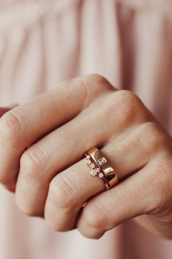 This makes the diamonds look so extravagant in VS-SI clarity and F color, so this ring is bound to make a lasting impression, and the Round Diamond Cluster Band signifies timeless beauty and sophistication in both singular use and with stacked other rings.