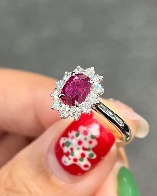 Embrace timeless beauty with the Ruby And natural Diamond Flower Ring, a captivating fusion of elegance and luxury. Crafted from solid 18k gold, this exquisite ring showcases a 1.01-carat natural Mozambique ruby, known for its deep, rich red hue and untreated purity. The striking ruby is surrounded by 12 dazzling diamonds, totaling 0.55 carats, forming a delicate floral-inspired design that exudes sophistication and charm.