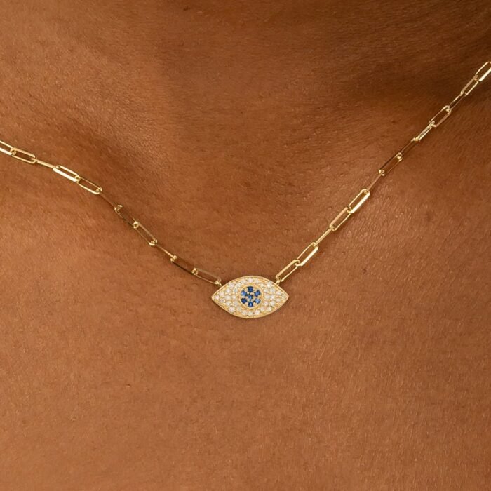 Be the first to review “Sapphire & Diamond Eye Paperclip Necklace” Cancel reply