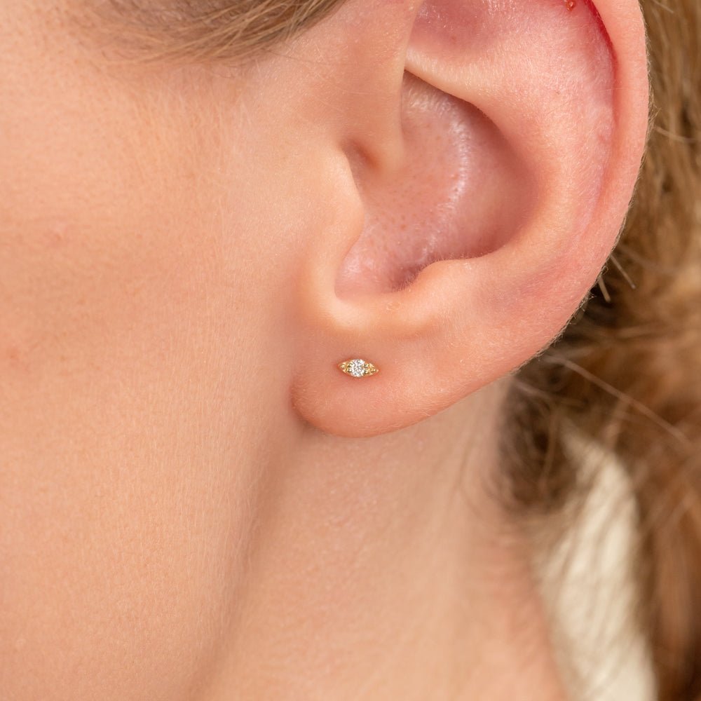 The single diamond eye stud is delicate and elegant, perfect for adding a subtle sparkle to any look.