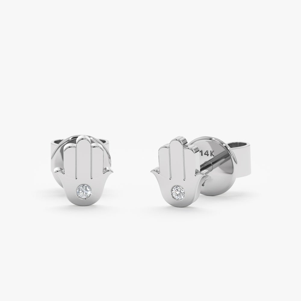 Single Natural Diamond Hamsa Studs