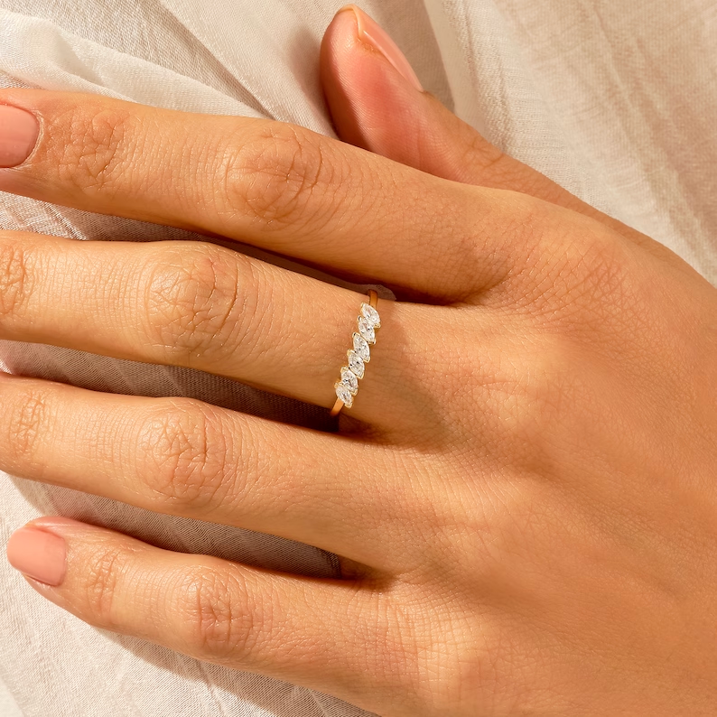 Elegant and timeless, our Slanted Marquise Diamond Wedding Ring is the perfect blend of sophistication and subtle charm. Designed as a dainty promise ring for women, this exquisite piece is crafted from 14K solid gold, available in White, Rose, and Yellow Gold to suit your personal style.