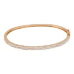 With clarity set to VS-SI and the color to F, it provides for a really excellent shine with sophistication to the entire design. The bangle is best to wear alone, providing for an extremely delicate statement. The more delicate bangle may be layered over another for added luxury.