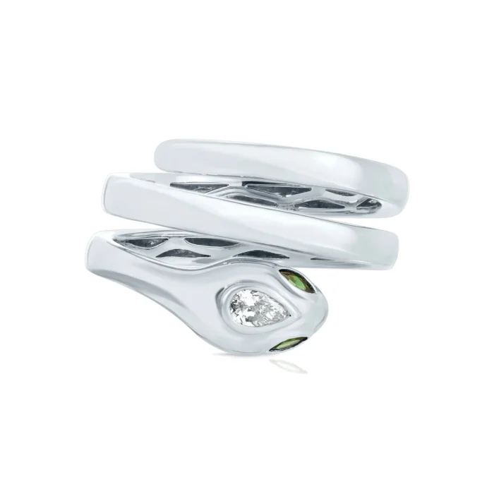 Elegant 14K solid gold snake coil pinky ring, combining a modern, edgy design with timeless luxury for a statement piece.