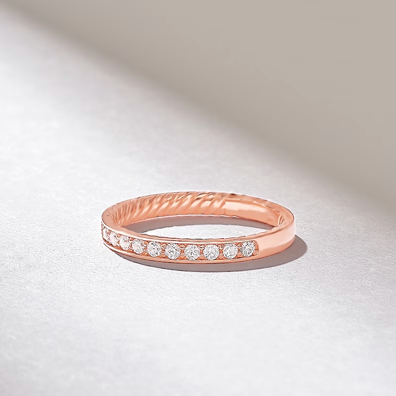 14k solid gold channel-set half eternity ring with twisted rope detail, 0.28 ctw GH color, VS-SI clarity natural diamonds. BIS & GIA certified.