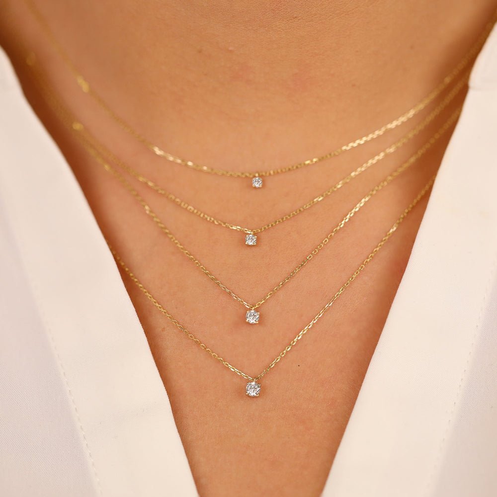 Whether worn alone for a subtle yet sophisticated look or layered with other necklaces for added allure, the Solitaire Diamond Necklace is a timeless piece that exudes effortless elegance and complements any outfit with its radiant charm.
