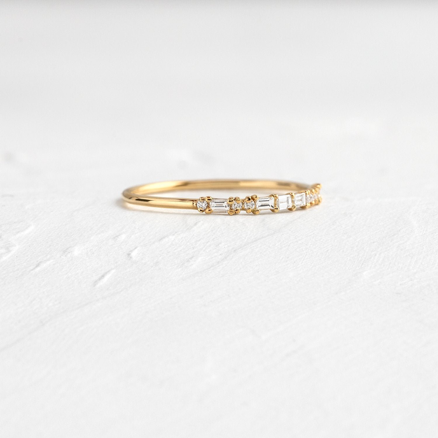 Stacking Baguette Natural Diamond 18karat Gold dainty Ring