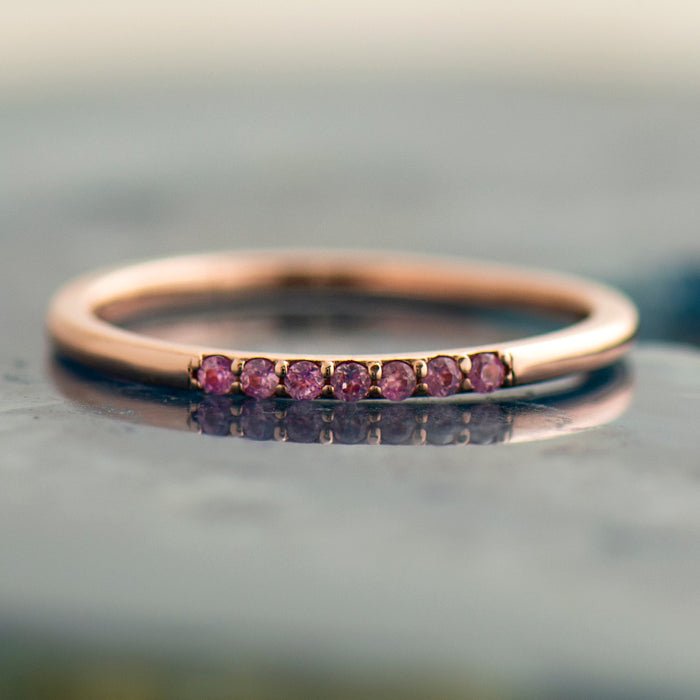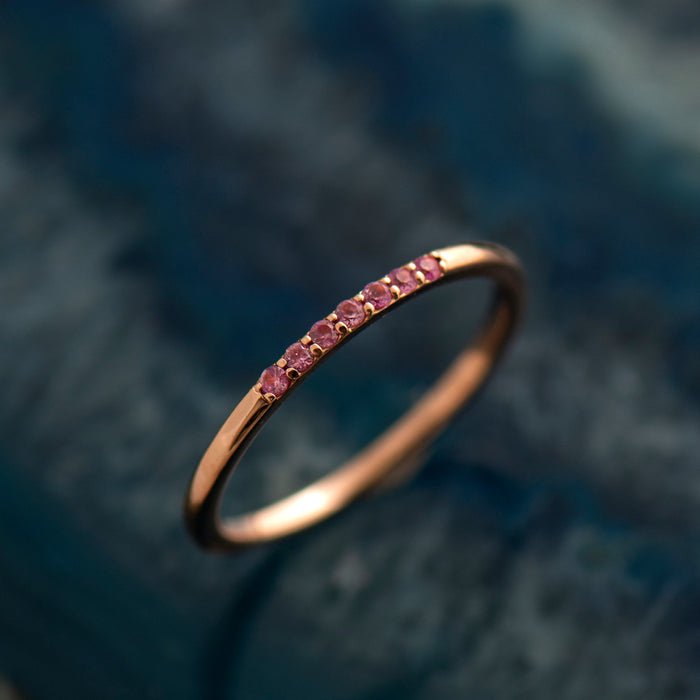 14K Solid Gold Minimalist Sapphire Wedding Ring is a striking and elegant piece that combines the timeless beauty of a pink sapphire with a modern, minimalist design. This ring features a stunning pink sapphire set in a sleek and refined band, making it an ideal choice for engagements, weddings, or as a special piece to celebrate a significant moment.