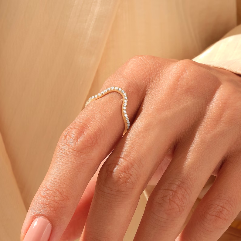 Natural Diamond Deep Curve Ring | Pave Stack Ring for Women | V Shaped Nesting Ring