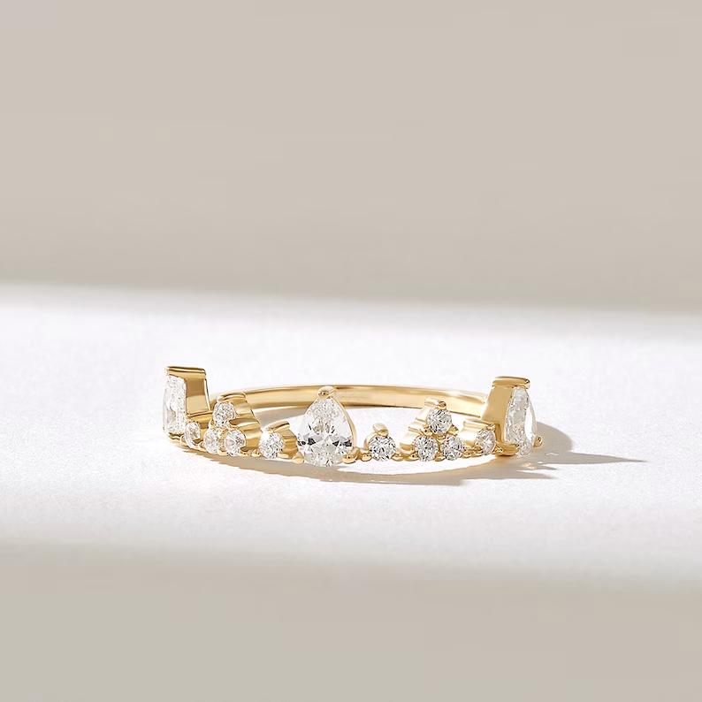 Natural Diamond Crown Stackable Ring: Unique 18K Solid Gold Bridal Ring for Women