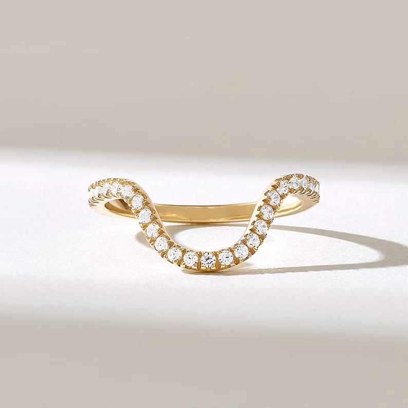 Natural Diamond Curved Band | 18k Contour Ring Enhancer | Solid Gold Pave Arch Ring