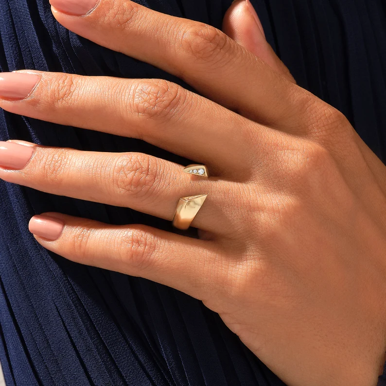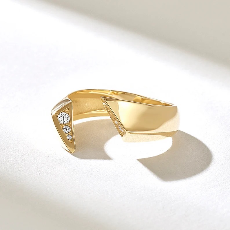 Natural Diamond Curved Ring | 18K Solid Gold Chevron Ring