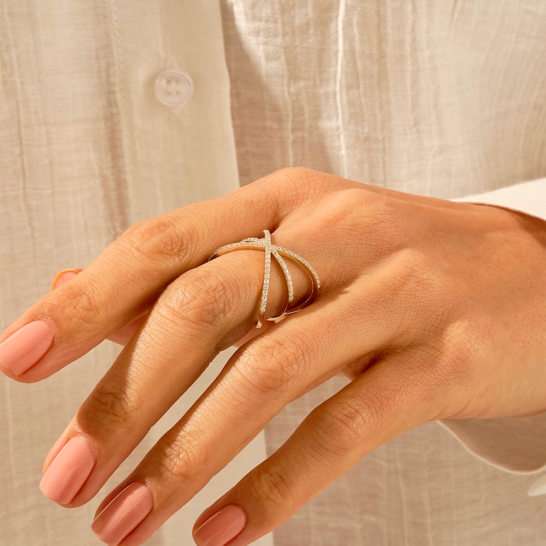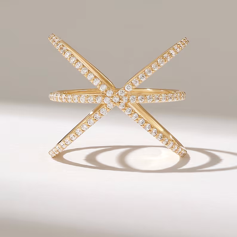 Natural Diamond Pave X Ring: 18K Solid Gold Criss Cross Statement Ring for Women