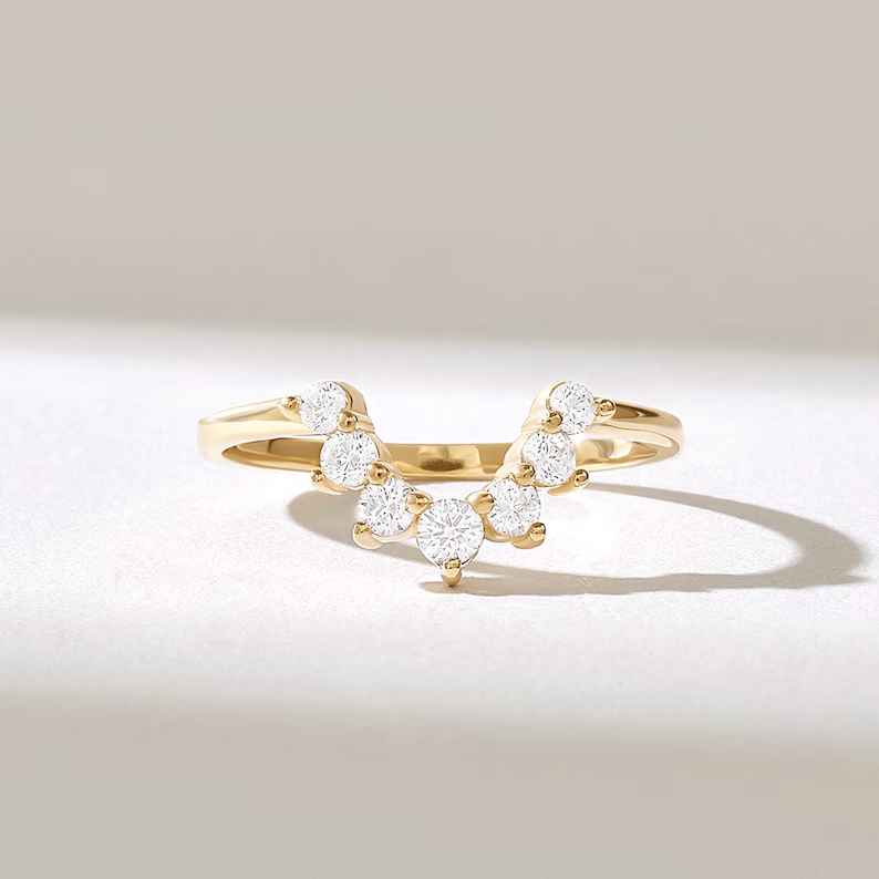 14K gold curved nesting ring with 0.37 ct GH COLOR, VS-SI clarity natural diamonds. GIA & BIS Hallmarked. Ideal for stacking.