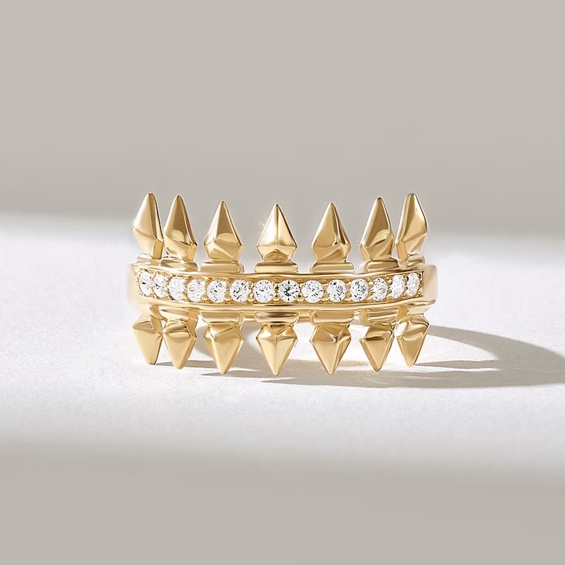 Pave Natural Diamond Spike | 2MM Pyramid Stackable Ring | Slim Pointy Gold Matching Ring