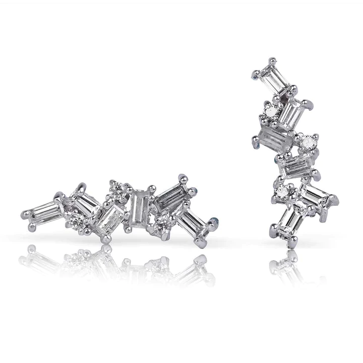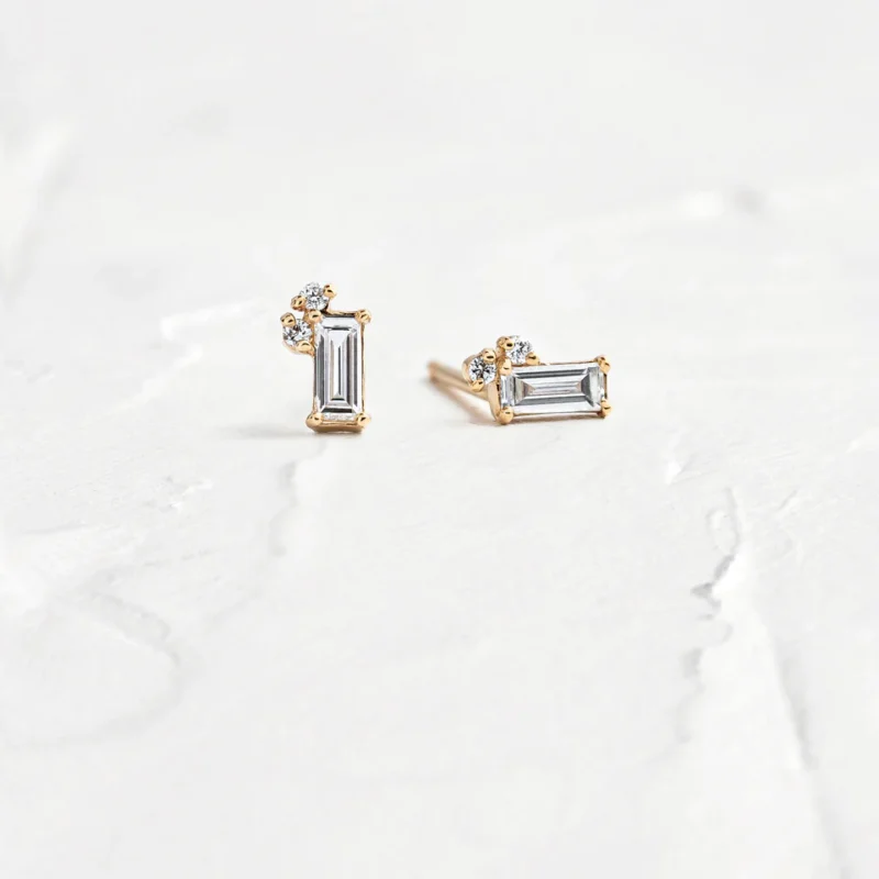 Baguette Natural Diamond Cluster Studs: Solid gold earrings showcasing a captivating cluster of natural diamonds in an artful asymmetrical design.