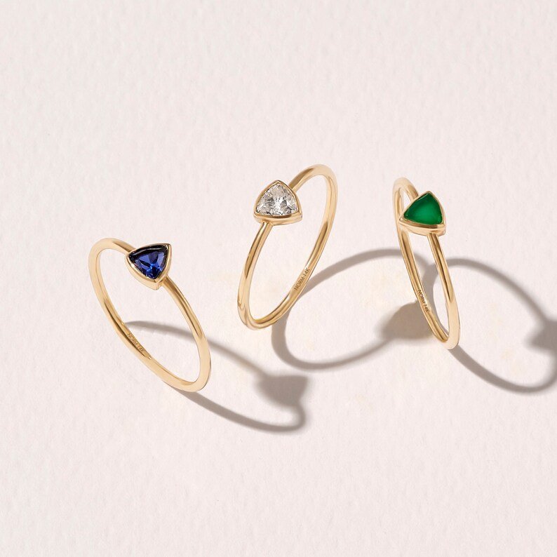Elegant 18k solid gold triangle agate ring, combining vibrant agate with a sleek, contemporary design for a timeless and eye-catching accessory.