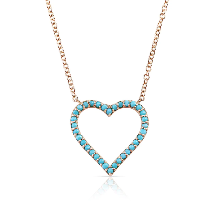 18k Solid Gold Turquoise Heart Necklace