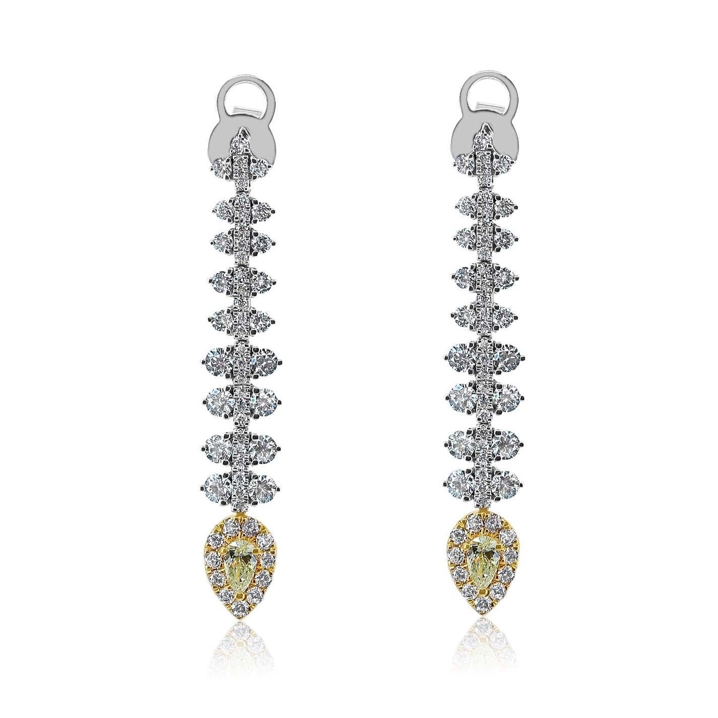 18k Solid Gold Lab Grown Diamond Drop Earring with Yellow Sapphire Pear Drop