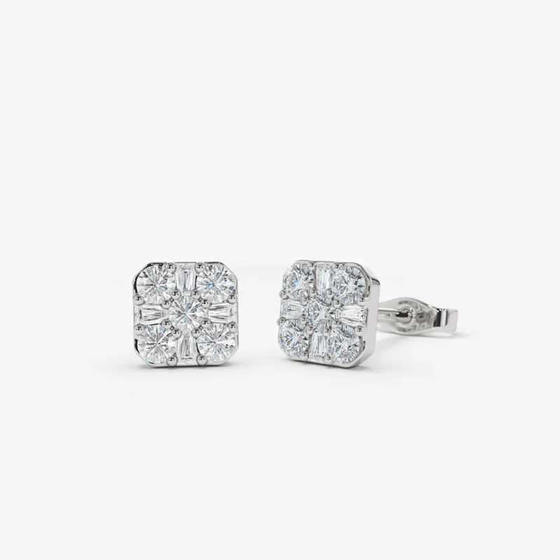 14k Square Baguette and Round Lab-Grown Diamond Earrings