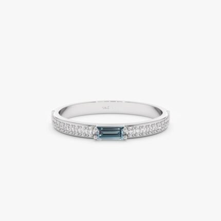 Get this Product in 18K GoldElegant 14K Gold Ring featuring 0.15 ctw Baguette Blue Topaz and 0.13 ctw Natural Diamonds – certified and customizable.